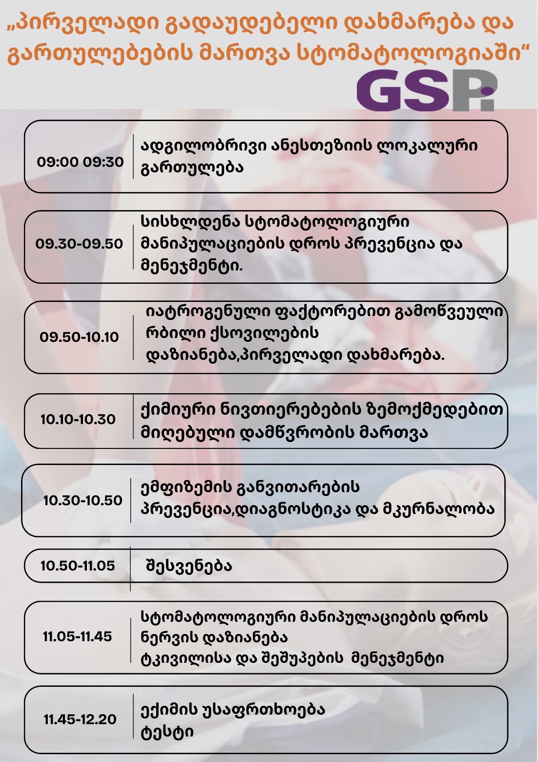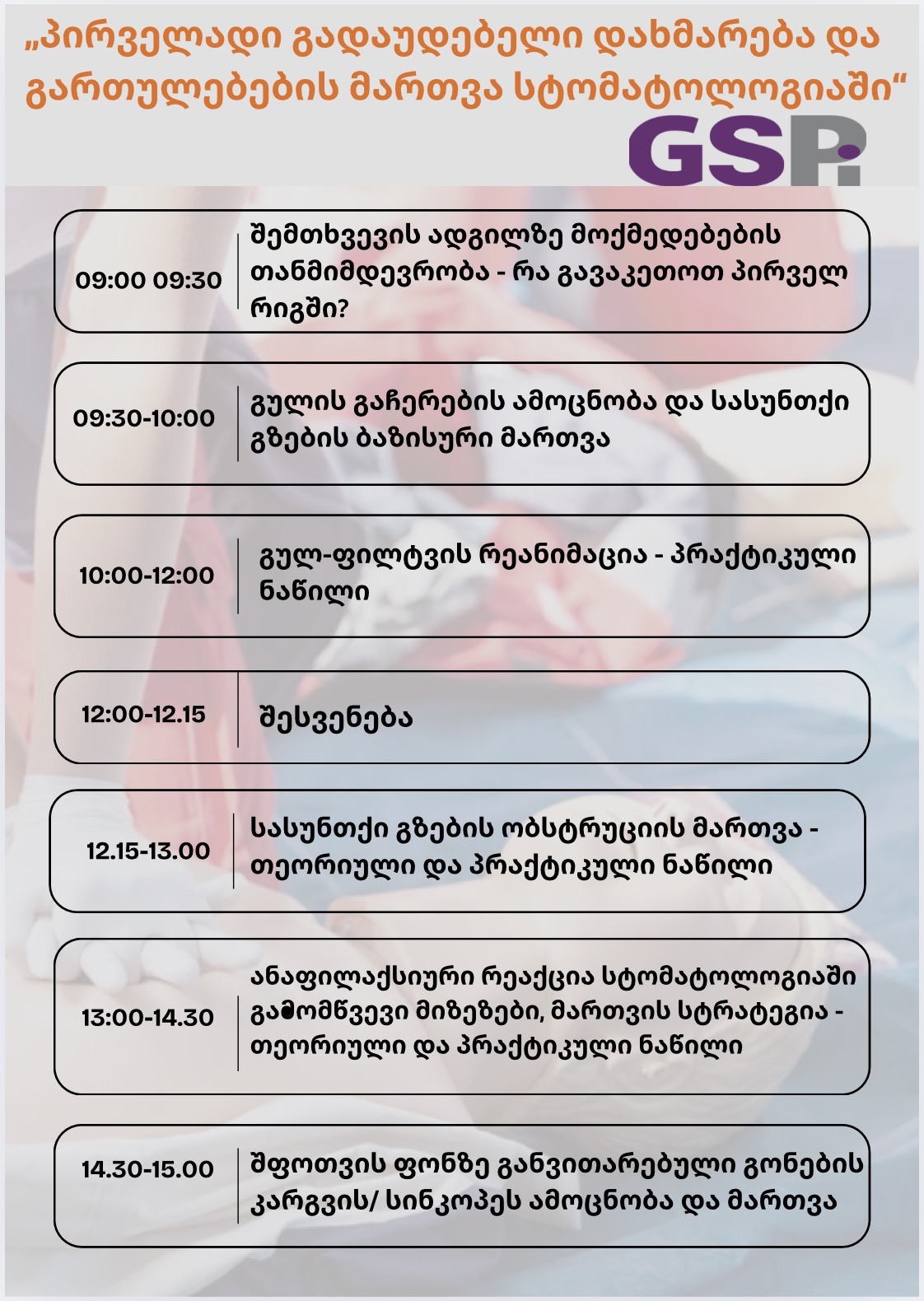 ქუთაისში GSPi - ს ორგანიზებით ტარდება ორდღიანი ტრენინგი: პირველადი გადაუდებელი დახმარება და გართულებების მართვა სტომატოლოგიაში.